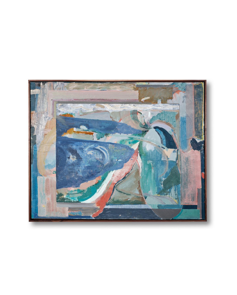 There is grace in the presence of what’s left here, but we are never quite sure whether this is the representation of a landscape or the representation of something closer to what Joan Mitchell called the ‘remembered landscapes that I carry with me—and remembered feelings of them, which of course become transformed.’ For Banks, he remembers through the surface of a work every time that he has touched it. Sometimes, when he was skint, Banks used cheap canvases that become reused or altered, and sometimes when he could afford more expensive linen or supports he would take advantage of this, but in either case the paintings still bear visible traces of its earlier form. He uses the paintings to remember the course of his life. ‘All of those moments of indecision when I avoided the real issue or couldn’t bring myself to paint over something I knew I needed to get rid of’, he recently confided to me: ‘They hold these thoughts better than I do… Indecision and forgetting become as or even more important than confidence and knowing.’