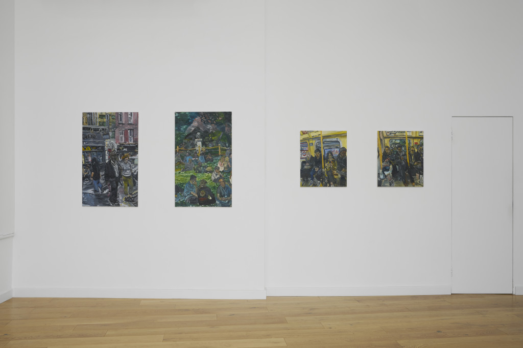 In a perceptive and fiercely observant new body of work, Jasmir Creed turns to the hurried streets of London – a map of terrain she enigmatically describes as her ‘metrotopia’ – to interrogate what it means to be a stranger in the crowd. Having developed a distinctive practice in both oil painting and works on paper, Creed depicts familiar experiences from seeking distraction on the tube to taking a lunch break in a crowded central square, and in so doing examines what are responsibilities to the anonymous stranger with whom we share a distinct intimacy. Often set against iconic London landmarks, from UCL’s Quad to Trafalgar Square and Piccadilly Circus, the figures in Creed’s paintings are beset by the alienation that can so often accompany urban life. By drawing on influences as diverse as Dexter Dalwood, Dryden Goodwin, Alice Neel, and Matthew Krishanu, and harnessing her own unique approach to compositional montage and spatial logic, Creed emerges as one of the most insightful figurative chronicles of London working in the city today.