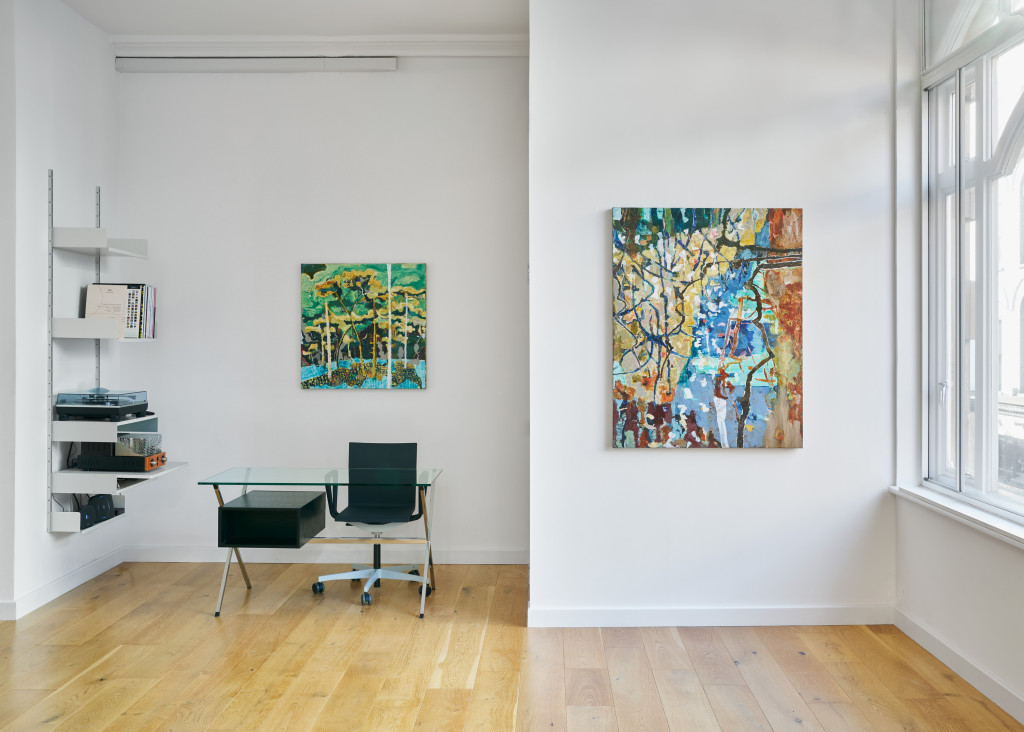 An upsurge of weeds in an industrial estate, the basis of Traces, appears diminutive glimpsed from a distance, and expands on approach, both in size and in detail, becoming glossily, thickly textured and variegated in colour. Wright’s mobile vantage point and intimate scale somehow captures the essence, arc and duration of this ordinary transformation. A multitude of perceptions are condensed into a single image, but each impression retains its character and aliveness. These paintings are dense in the way a Proustian sentence is dense: they teem with subjectivity, and they are palimpsests of vivid sensory experiences. Density, in these paintings, is partly about conveying the depth and complexity of perception, its peculiarities and restlessness. Sight is as pertinent here as touch, and everywhere in these paintings there is a pleasure in the medium’s texture and materiality. Density is a surfeit of texture, and it begs the question of what lies beneath: it invites excavation.