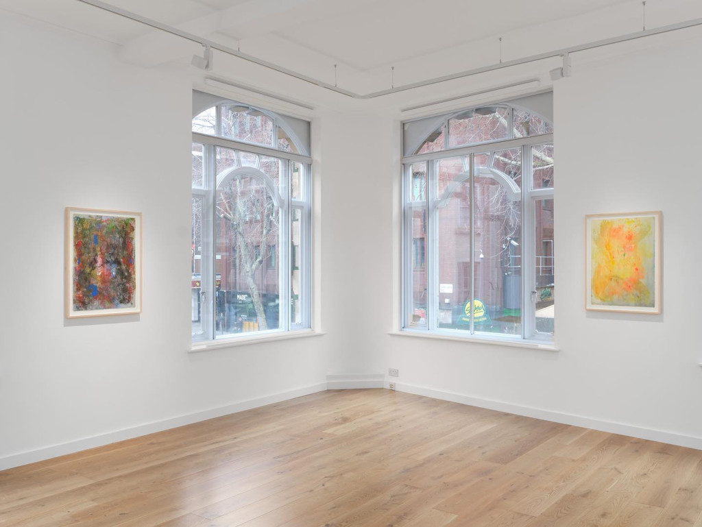 Taking light as his theme for these works of the past two decades, which include five acrylics on paper and two monoprints, mostly from the period 2002-2006 but including one more recent work from 2018, Branch takes abstraction into new territory by returning to the capacity of pigment to construct the effect of light and space. If the German émigré artist and teacher Hans Hofmann was right when he said, of his ‘push and pull’ technique of abstraction, that ‘in nature, light creates the colour… in the picture, colour creates the light’ then Branch has mastered this interplay. His is a way to let the light fall with the same enveloping transformations that we encounter on an early autumn lawn at dusk or seen through the heavy knuckles of a London fog. There are some paintings, like Untitled IV (2003), that capture the barely perceptible luminosity of a spring sky, all fleshy tones and cornflower yellow, while others, like Untitled I (2004) heave around a central gravitational axis, building the same atmospheric weight of a midwinter storm in an open field.